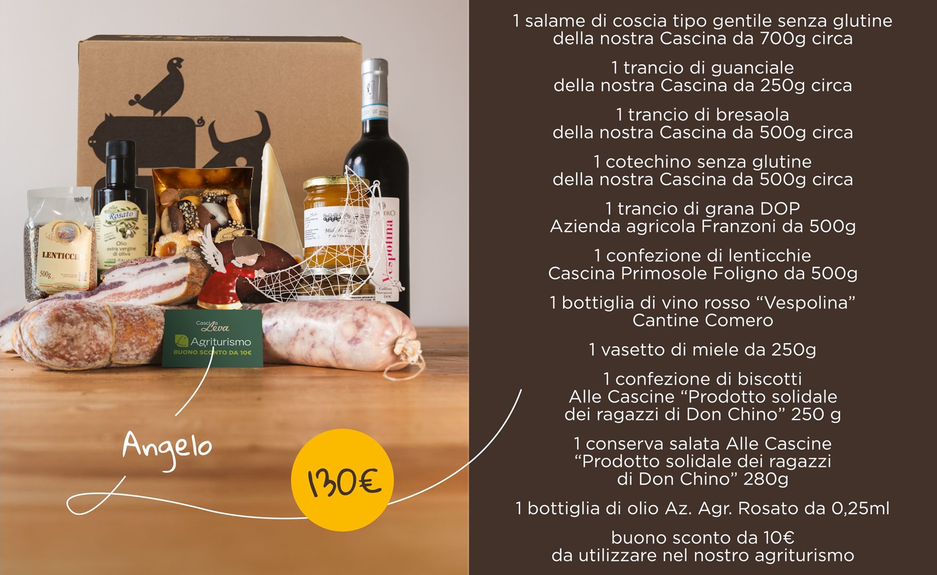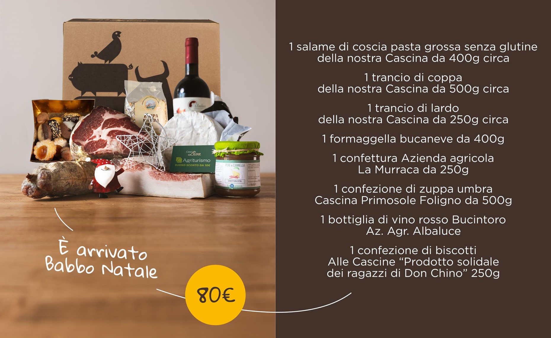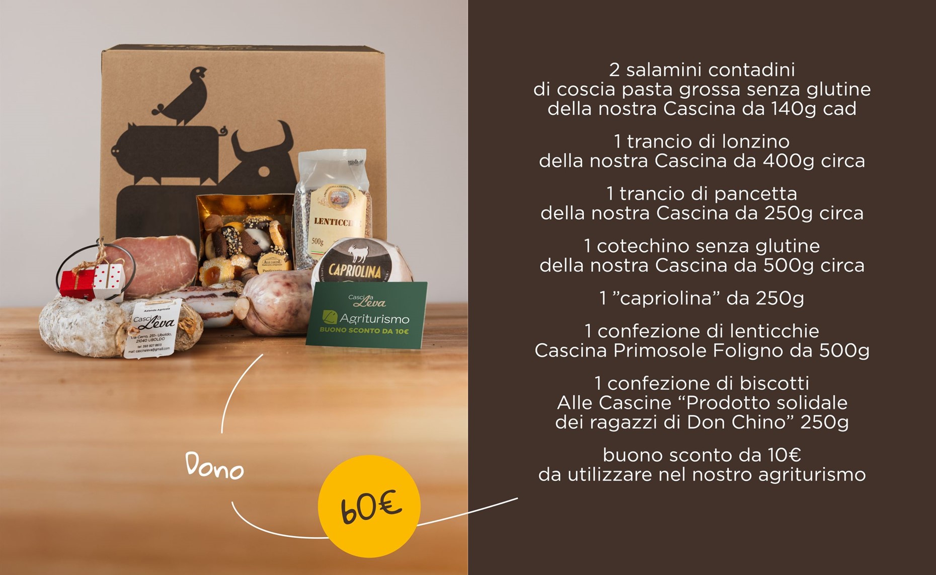 In ogni scatola, troverai alcuni prodotti della Cooperativa alle Cascine fondata da Don Chino Pezzoli.