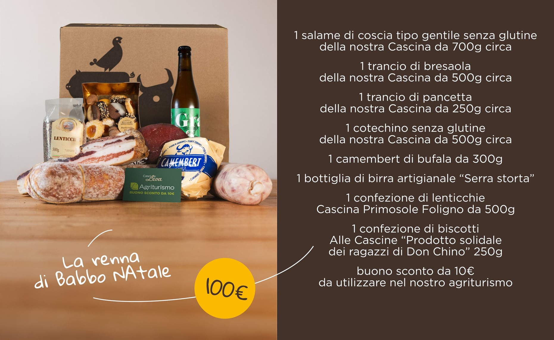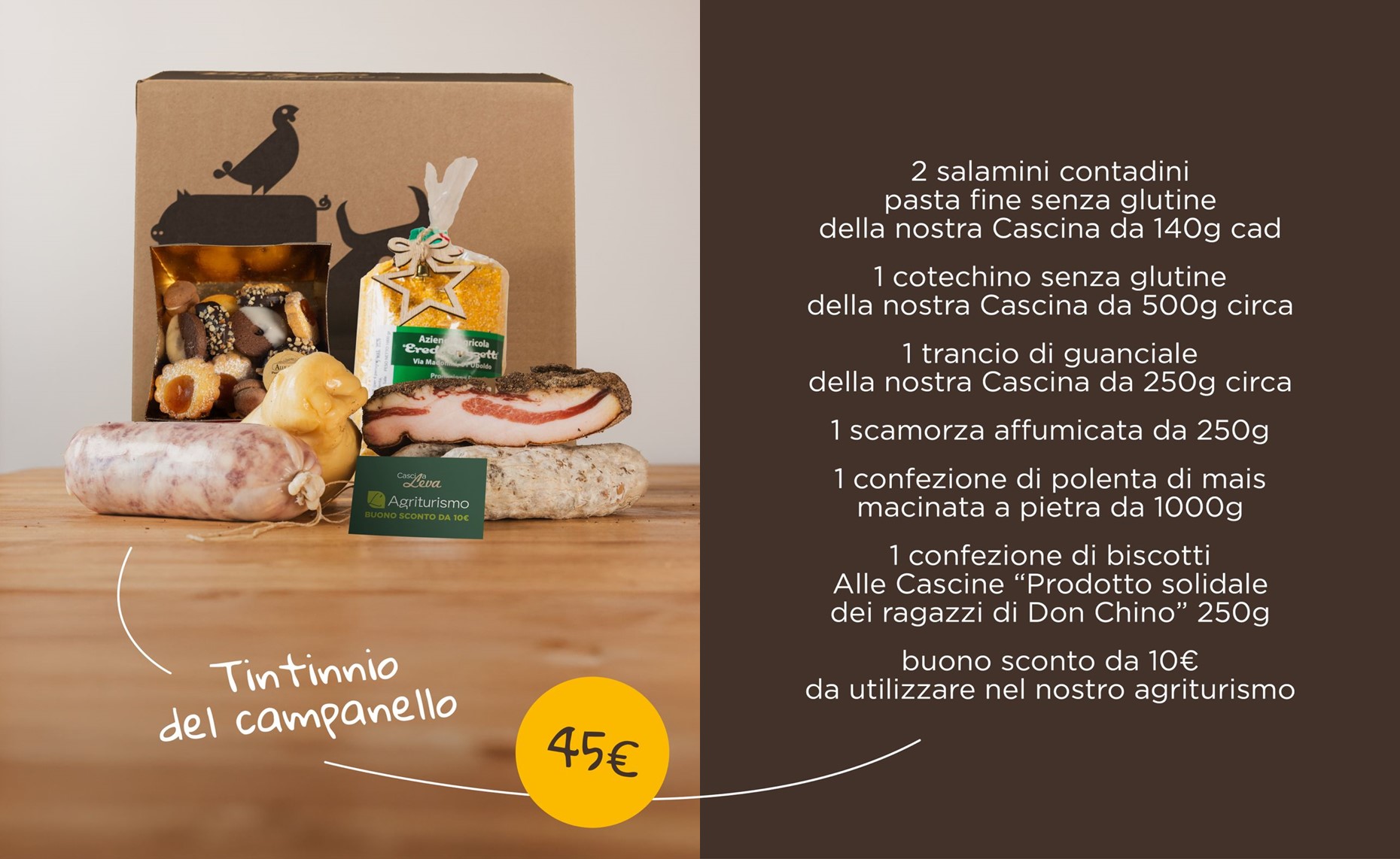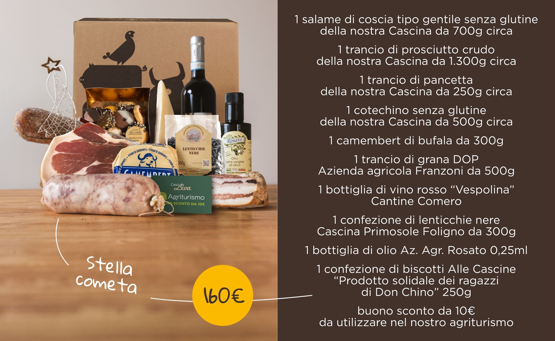 In ogni scatola, troverai alcuni prodotti della Cooperativa alle Cascine fondata da Don Chino Pezzoli.